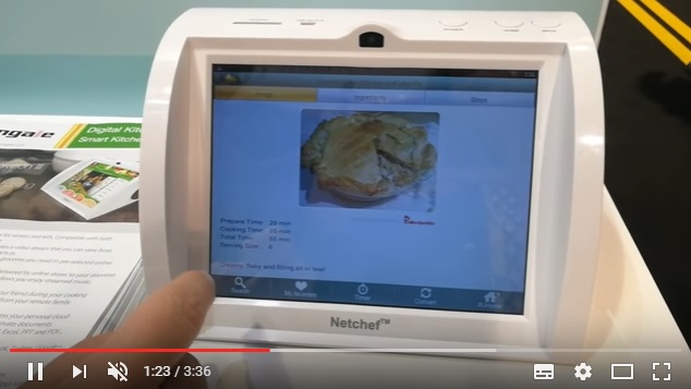Este asistente de cocina, permite buscar recetas por tipo de alimentos, da los ingrediente y el modo de preparación, además dispone de una cámara donde podremos realizar videochats con otros cocineros, así como función de vídeo vigilancia, también podemos escuchar música mientras cocinamos.