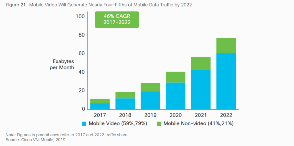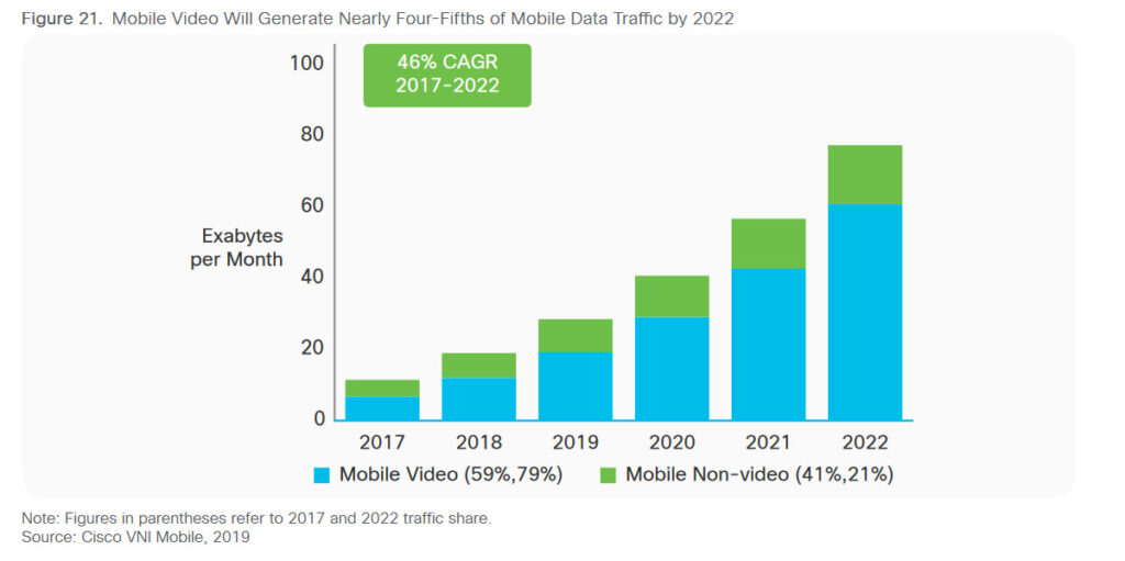 La consultora estadounidense destinada a las telecomunicaciones conocida por Cisco, ha presentado un informe en el que se anuncia que para el año 2022 el 79% de los datos que se intercambiarán en la red serán de contenido audiovisual, en otras palabras videos.
