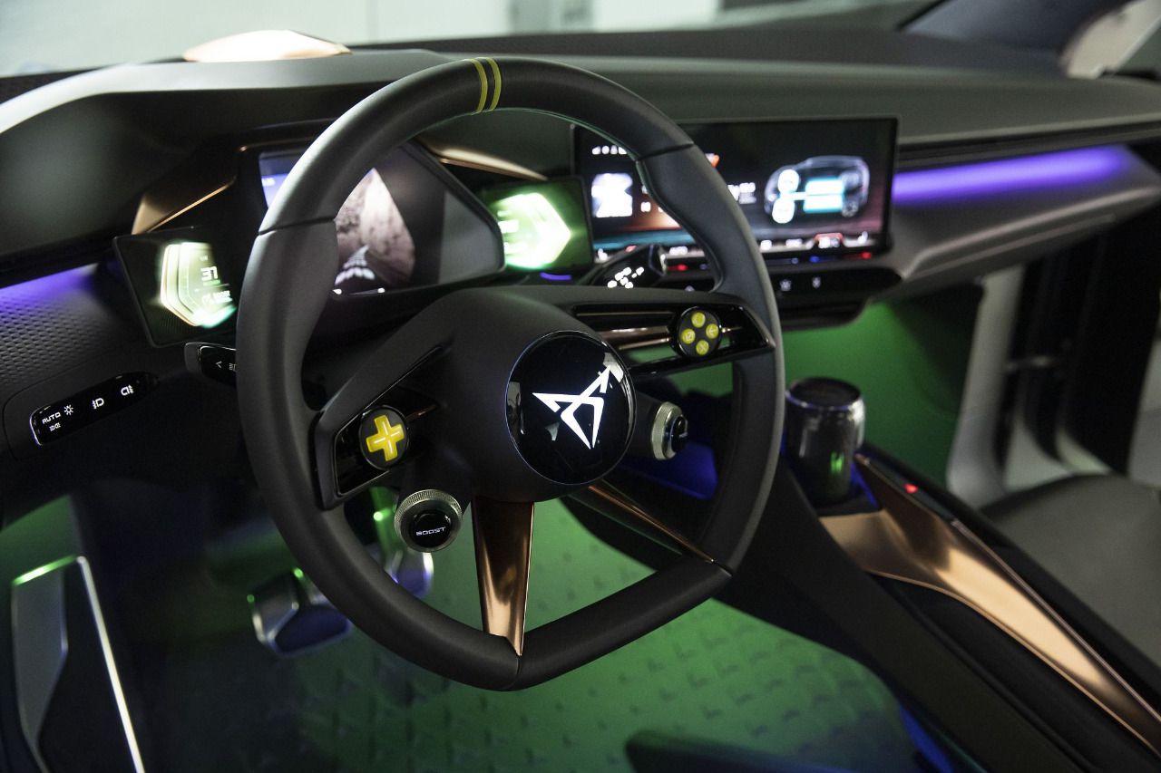 Cupra ha mostrado un nuevo concepto de diseño en el interior de su modelo 100% eléctrico, el Cupra UrbanRebel Concept, que apuesta por la tecnología como protagonista con una estética gaming.