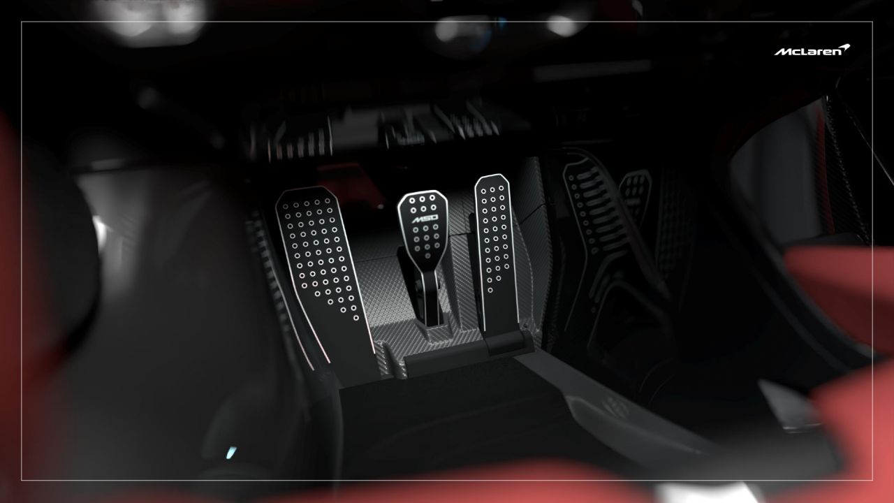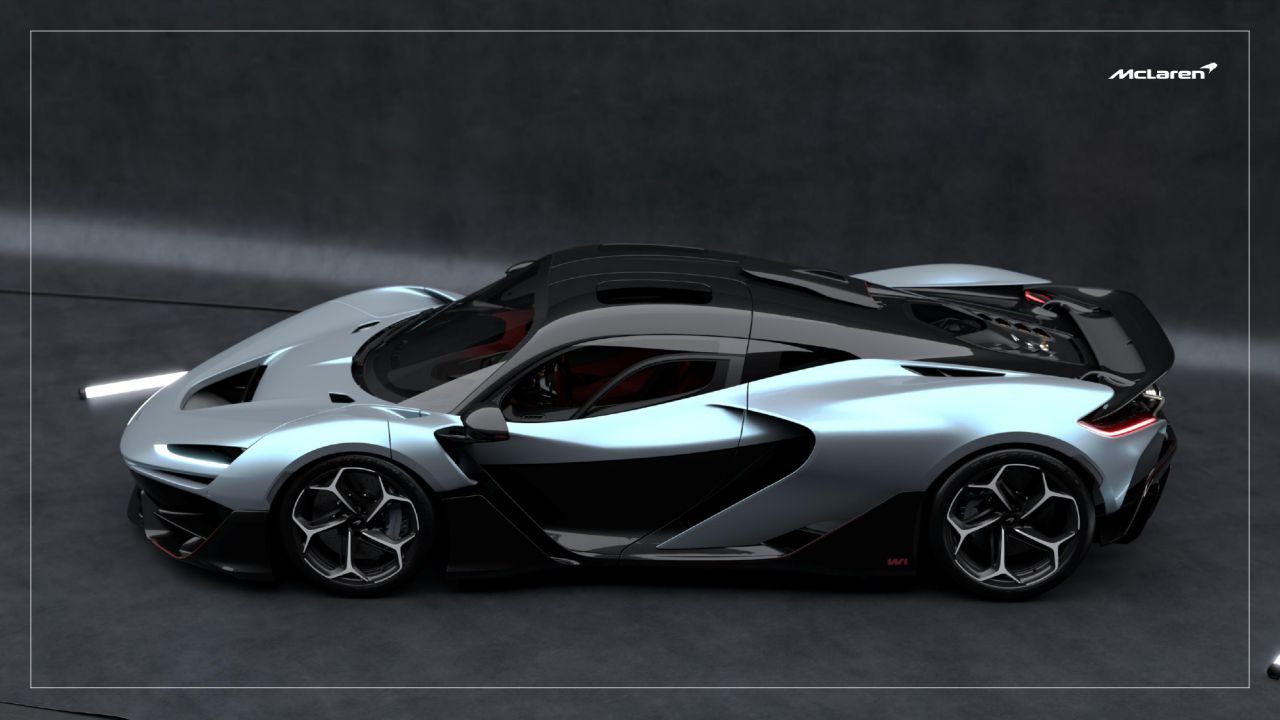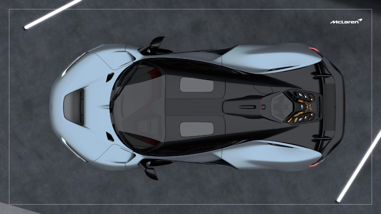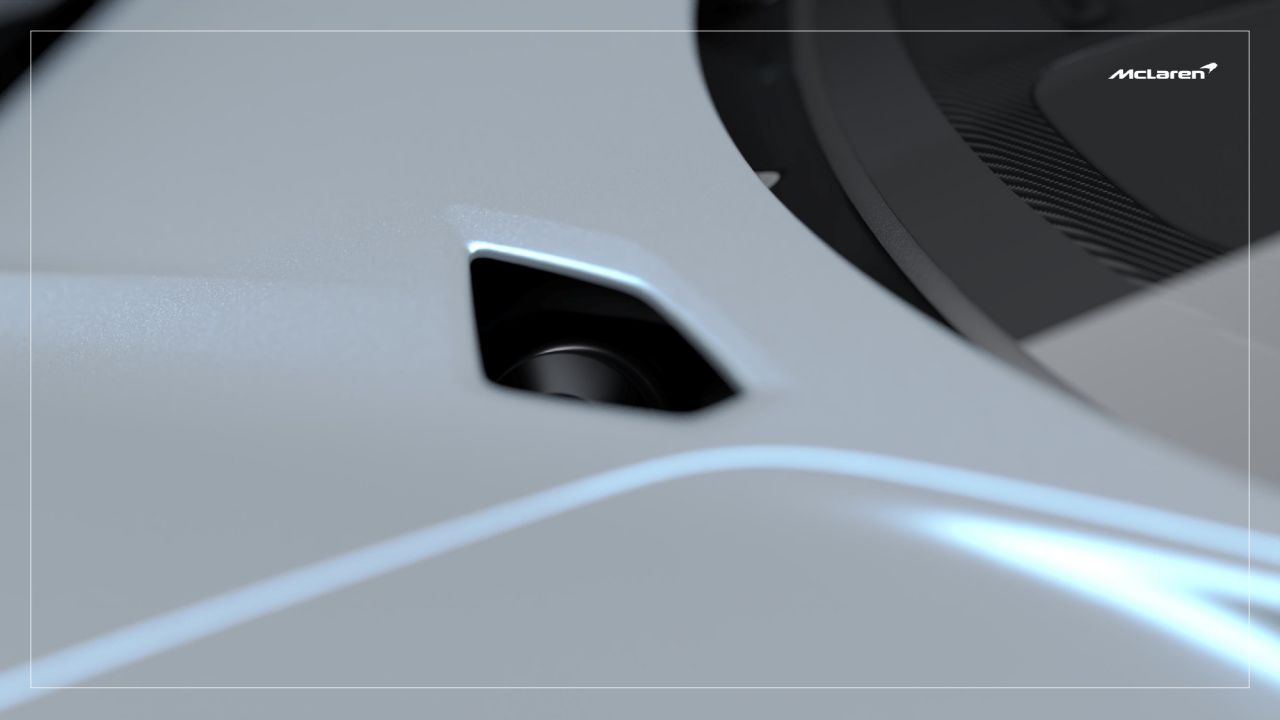 Un vistazo cercano al motor de un automóvil McLaren, destacando su diseño elegante.
