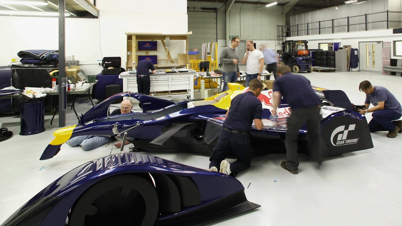Adrian Newey, famoso diseñador de coches de carreras, junto a un modelo de Gran Turismo.