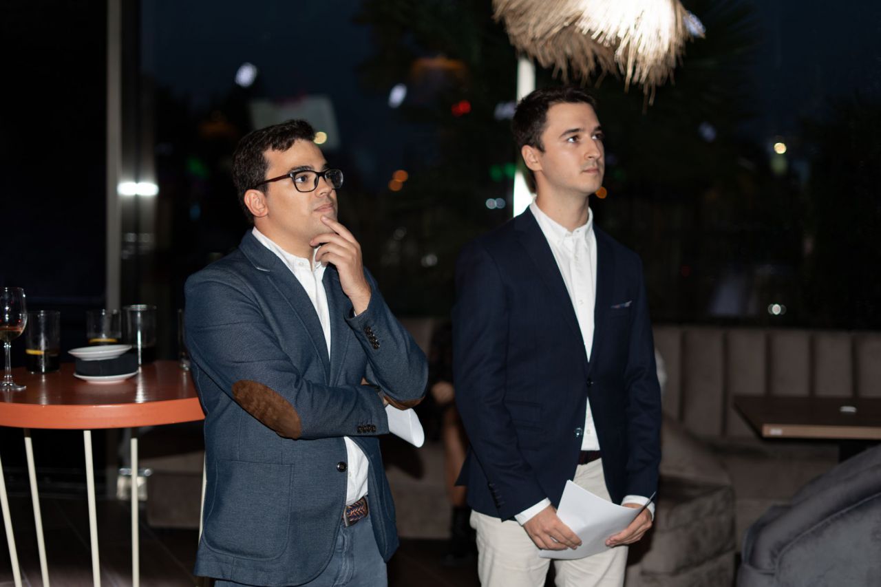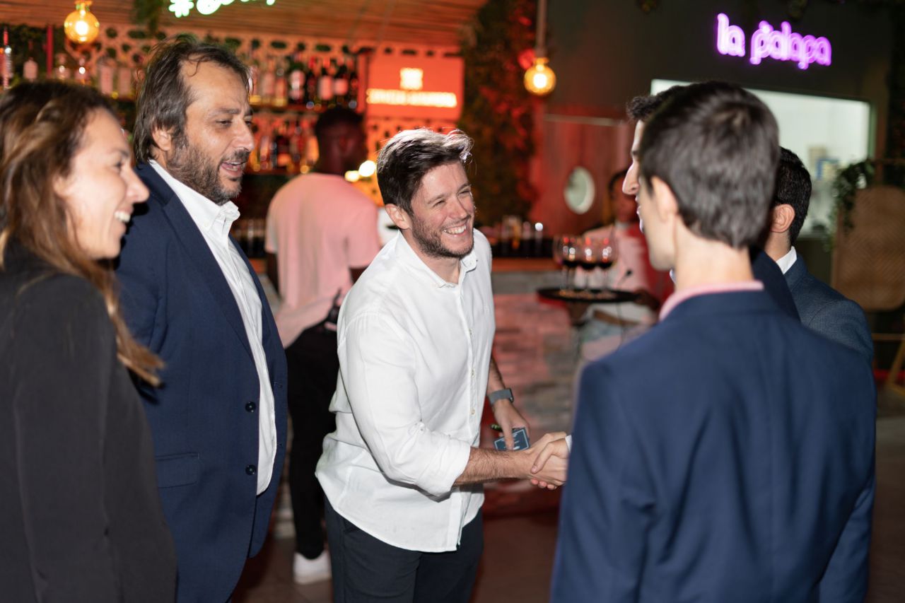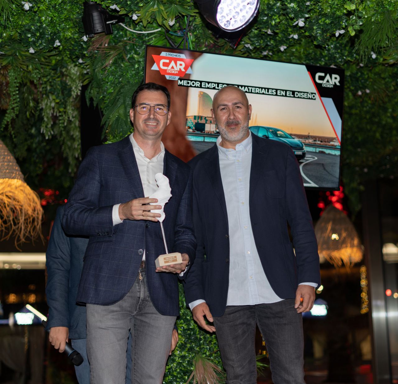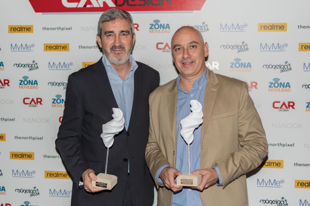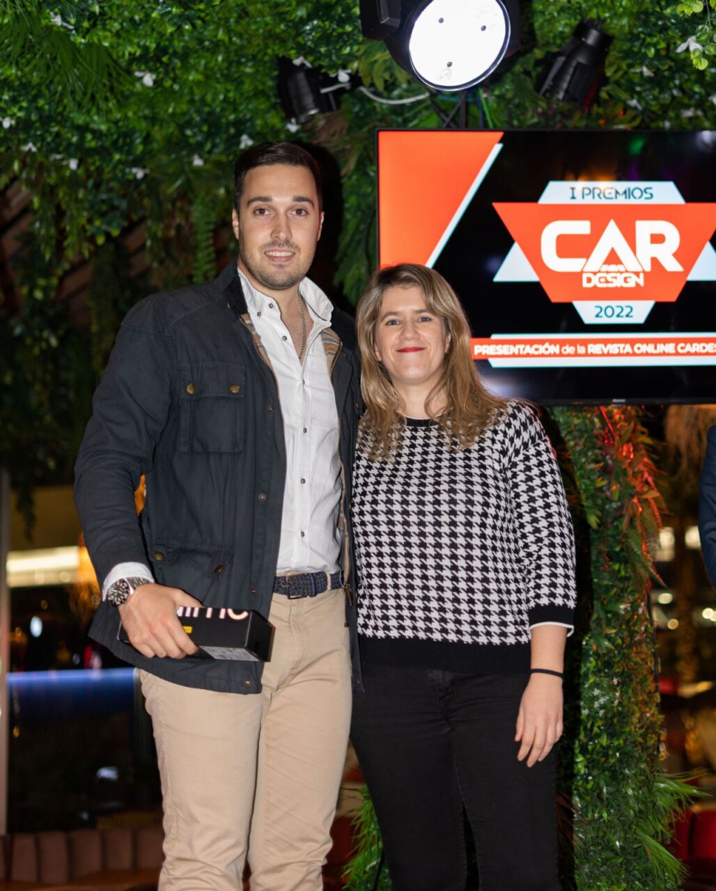 En esta imagen, un grupo de seis personas se presenta en el evento Car Design. Todos lucen sonrientes y están vestidos de manera casual, destacando la camaradería y el ambiente profesional del evento. El fondo está decorado con logotipos de patrocinadores, añadiendo un toque corporativo a la escena.
