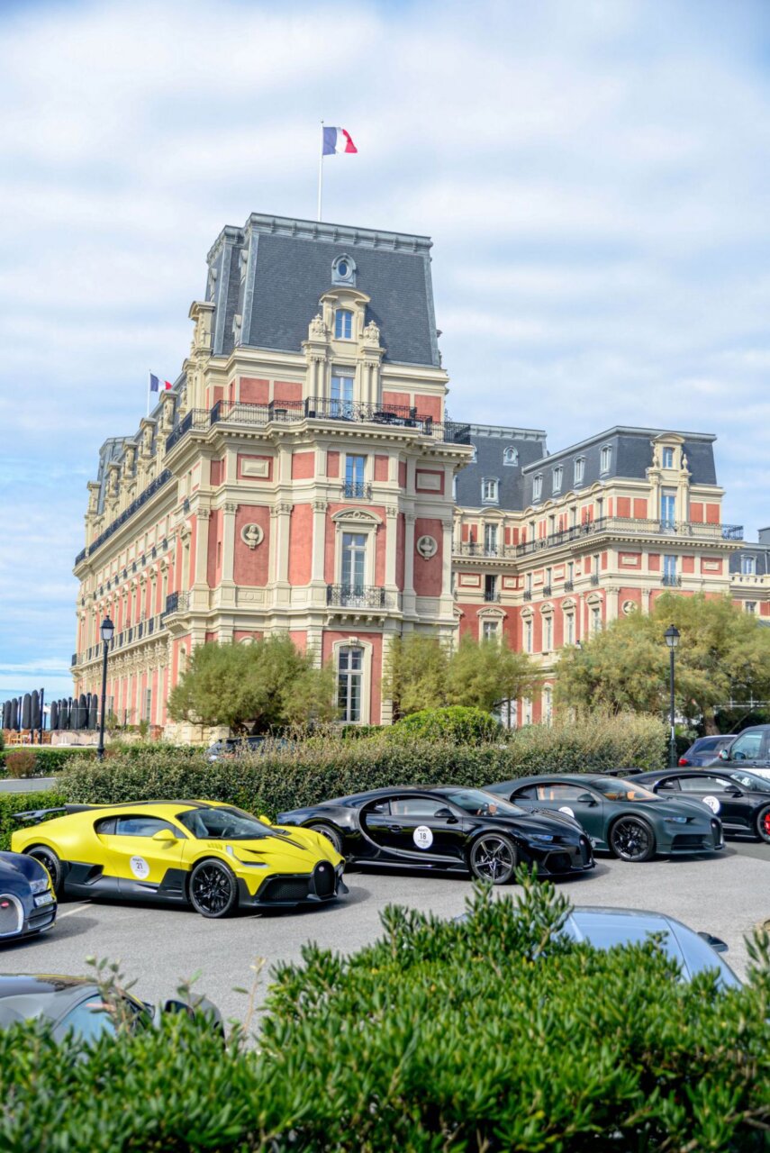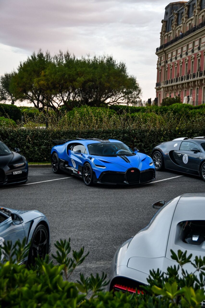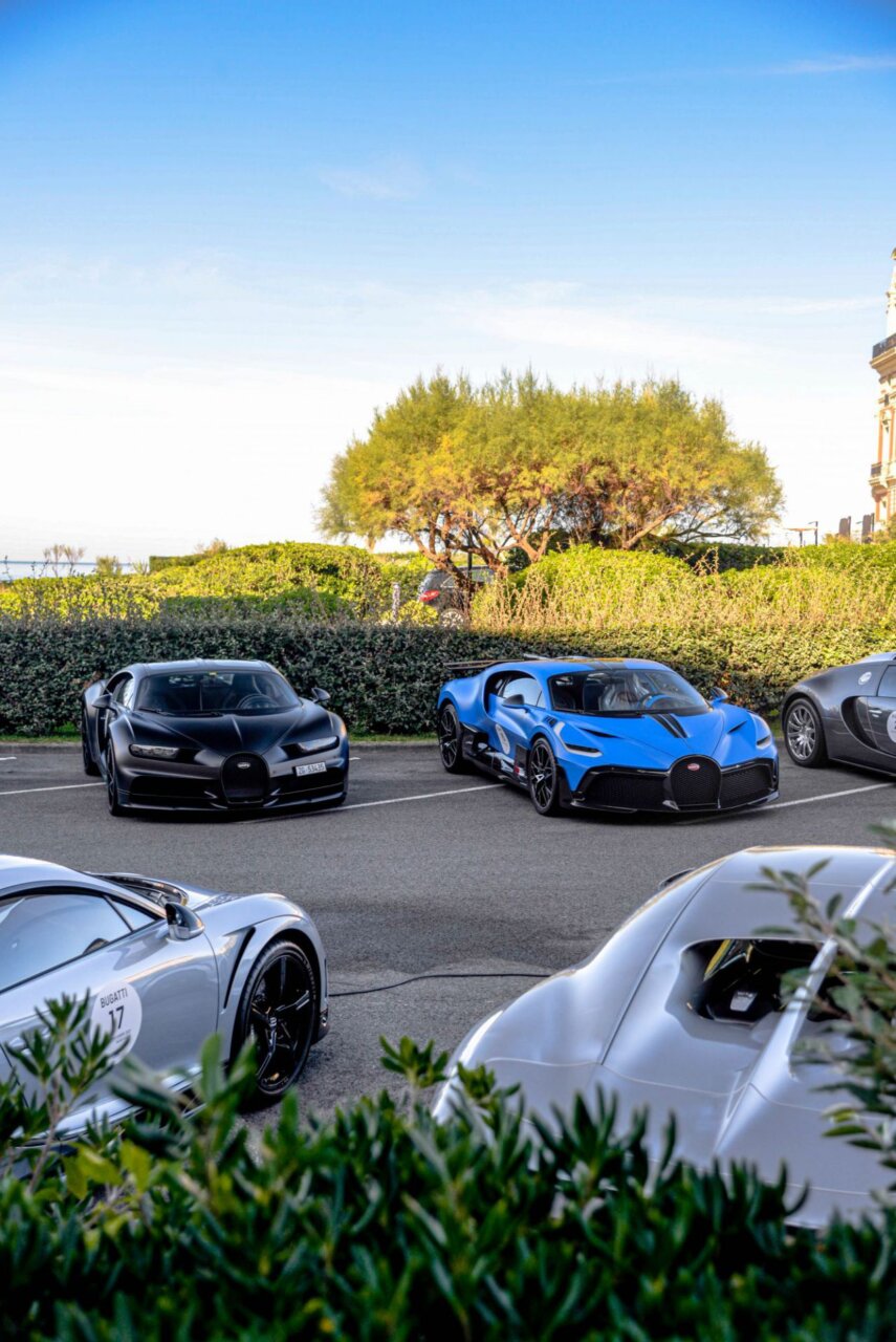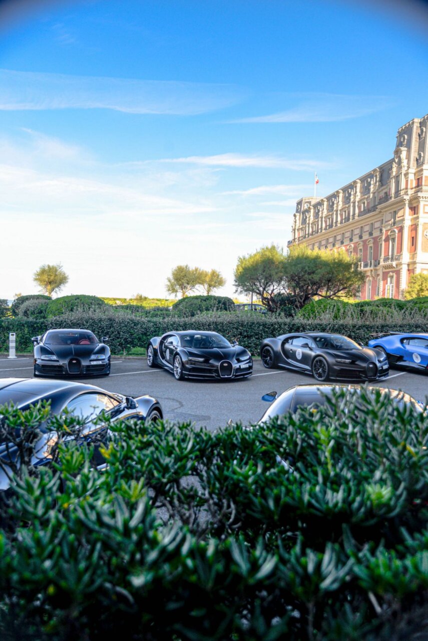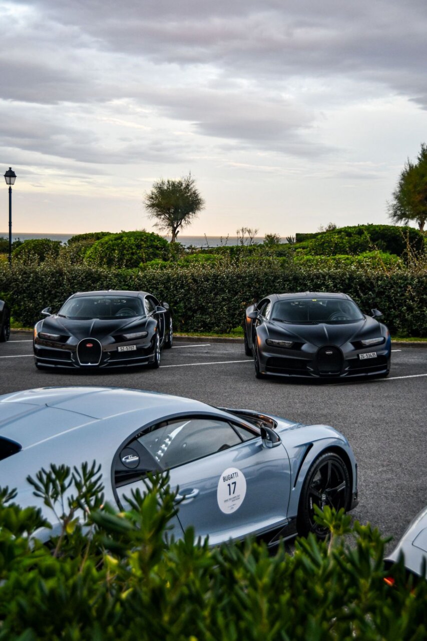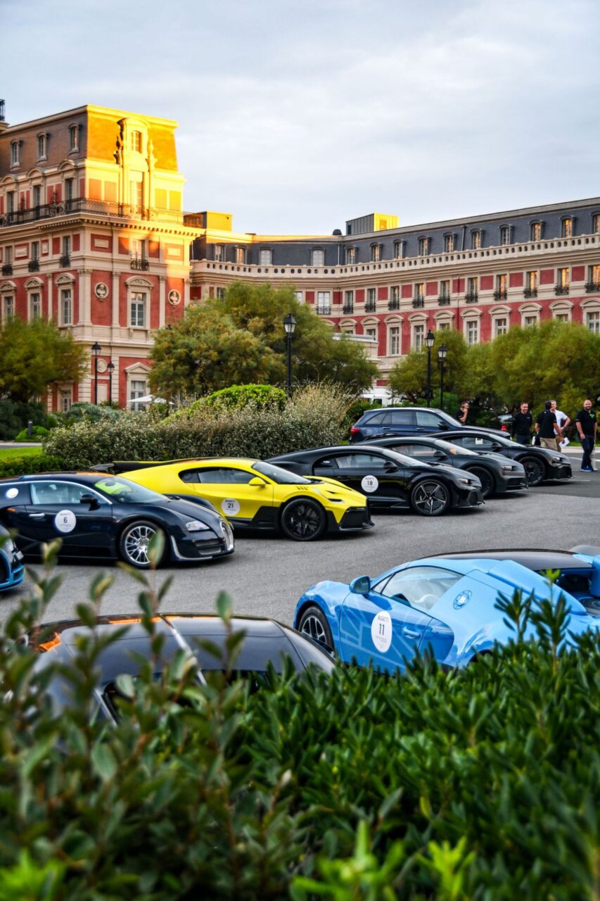 La imagen muestra una fila de coches lujosos en un evento al aire libre, con un edificio histórico al fondo. Los coches, de diversas marcas y colores, son el centro de atención, resaltando la exclusividad y el estilo. Este evento atrae a entusiastas del automovilismo y amantes del lujo.