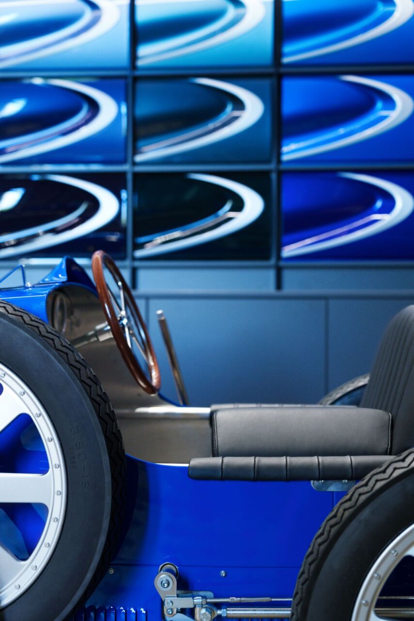 La imagen muestra a un diseñador automotriz trabajando en un ordenador, creando un modelo de automóvil en 3D. En el fondo, se pueden ver muestras de colores y texturas, lo que sugiere un ambiente creativo y profesional. Este tipo de diseño es crucial en la industria automotriz moderna.