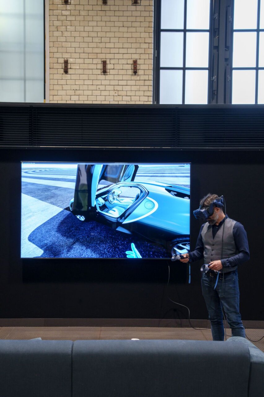 Un diseñador trabaja en un modelo de automóvil en 3D en su oficina.
