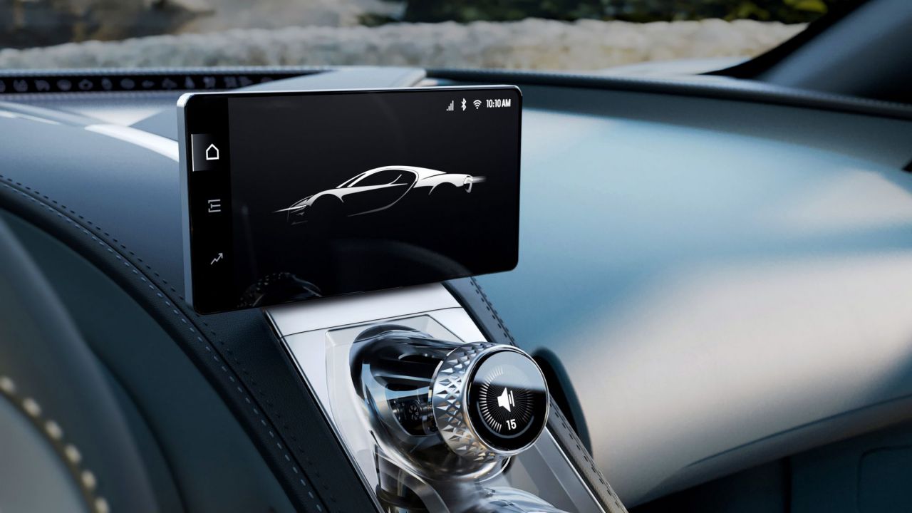 Esta imagen muestra el interior de un automóvil Bugatti, destacando su diseño sofisticado y detalles de alta calidad. El volante y el tablero están equipados con tecnología avanzada, reflejando la exclusividad de la marca. Un vistazo a la fusión de lujo y rendimiento en la industria automotriz.