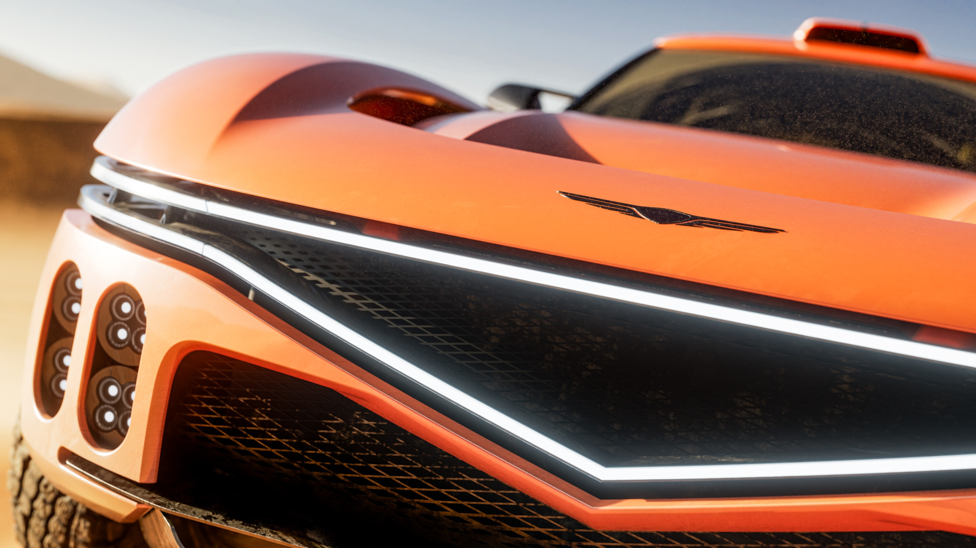 El Genesis X Skorpio Concept, un todoterreno extremo, se enfrenta a las dunas del desierto.
