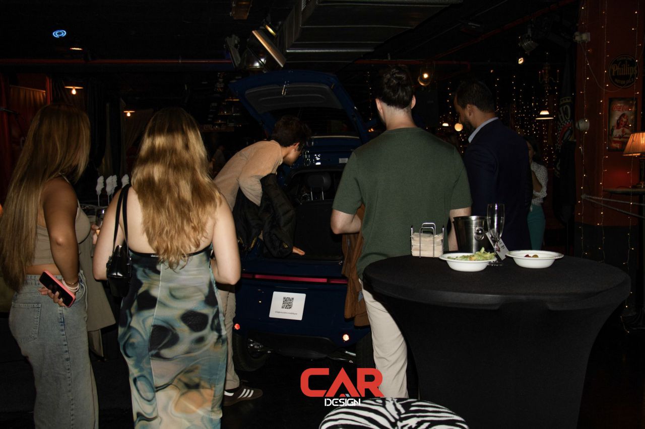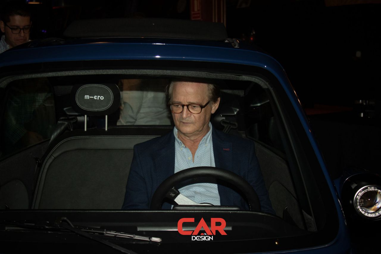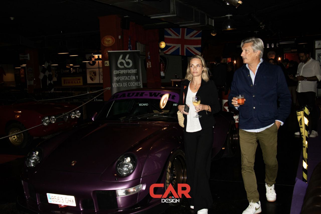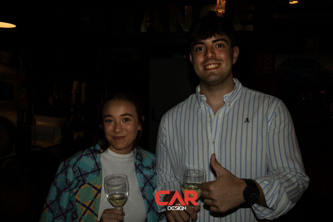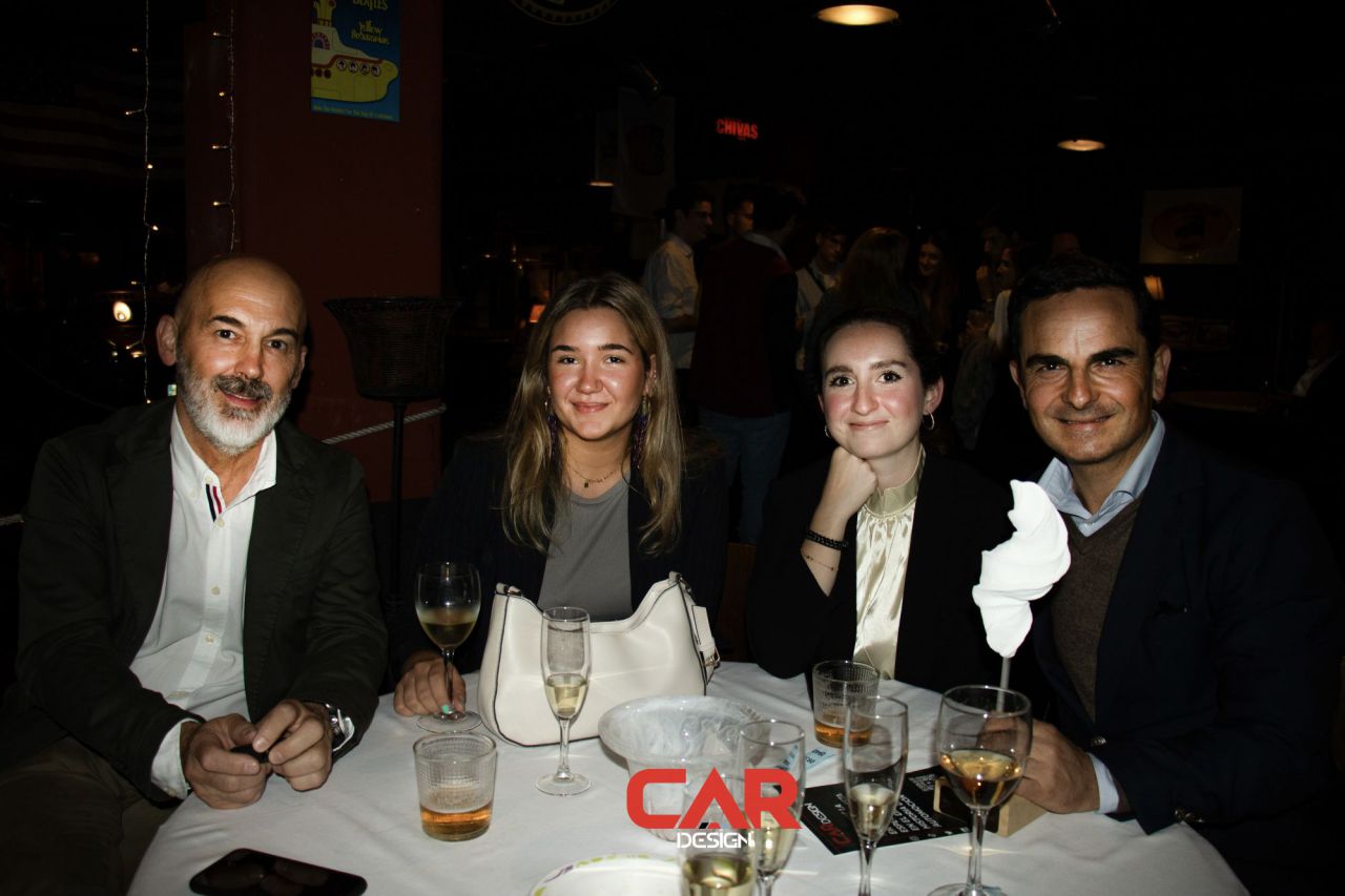 En este evento de Car Design, dos hombres se destacan en primer plano, mostrando una actitud amigable. El fondo está decorado con logotipos de marcas reconocidas, creando un ambiente vibrante y profesional. Esta imagen captura la esencia de un evento de networking en la industria del diseño automotriz.