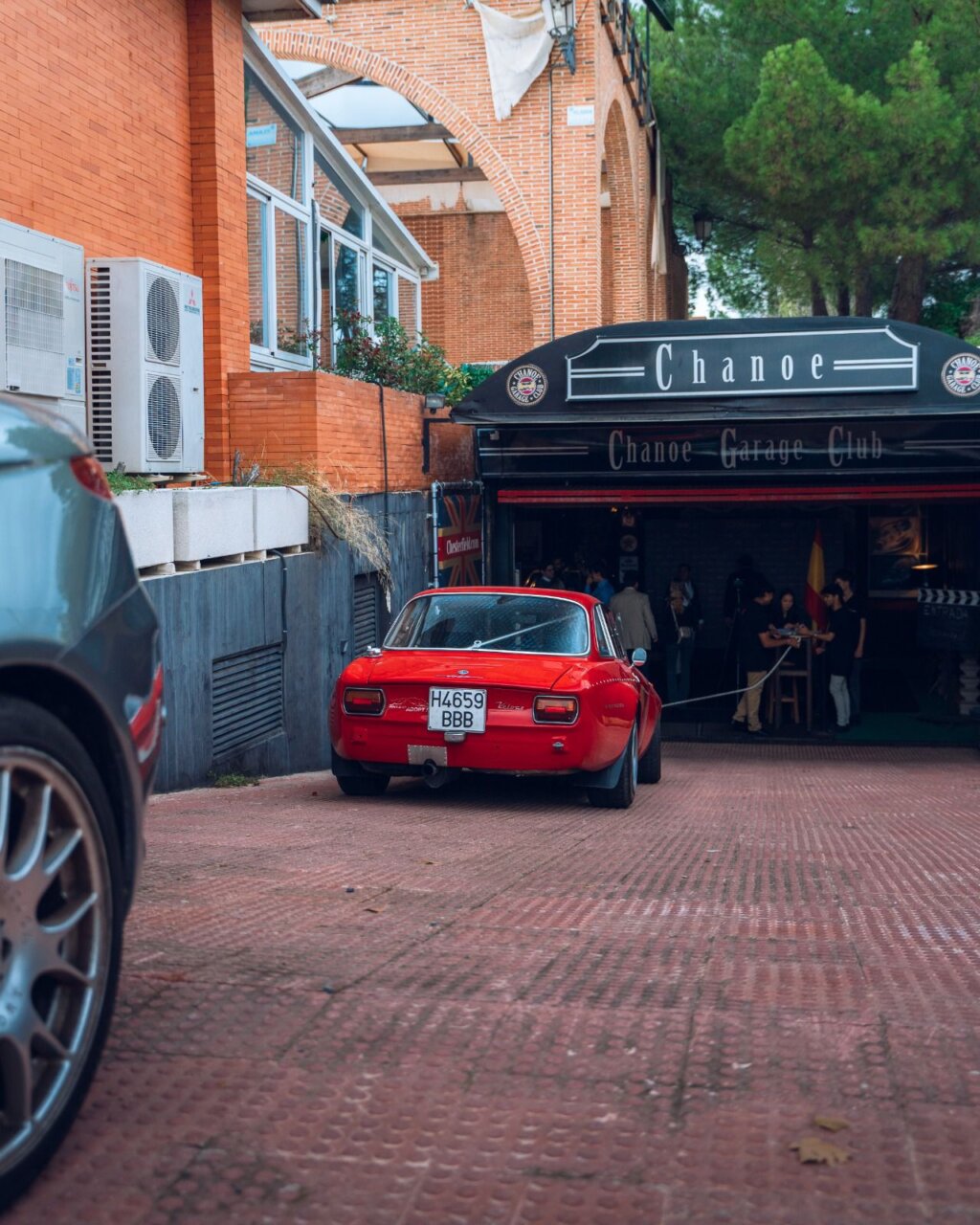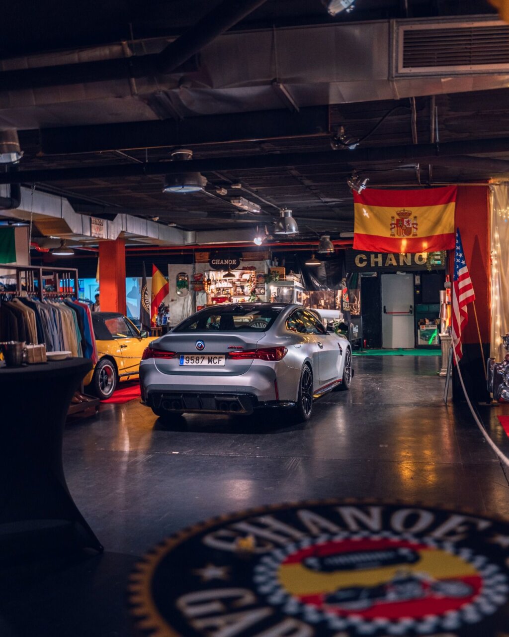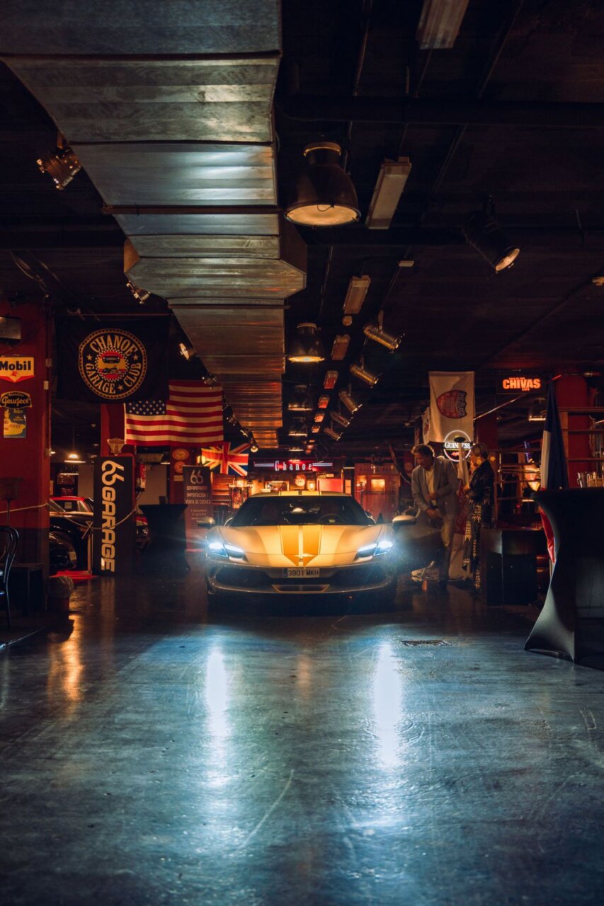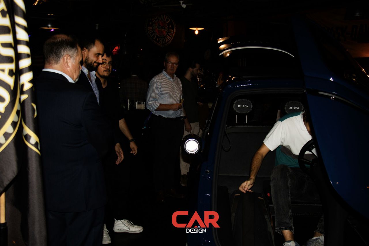 En este evento de Car Design, dos hombres se destacan en primer plano, mostrando una actitud amigable. El fondo está decorado con logotipos de marcas reconocidas, creando un ambiente vibrante y profesional. Esta imagen captura la esencia de un evento de networking en la industria del diseño automotriz.