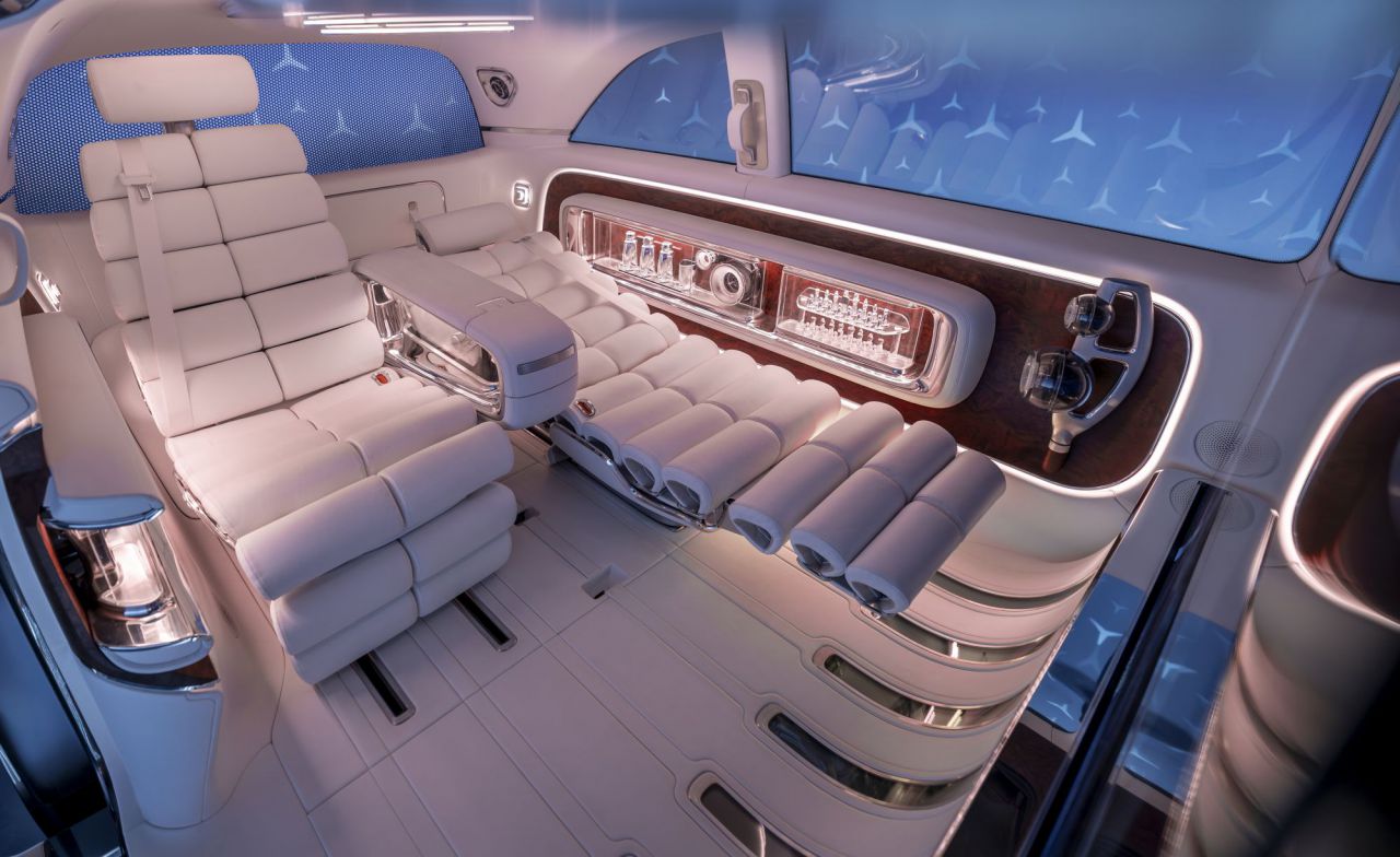 Vista del interior de un vehículo de lujo con diseño moderno y elegante.