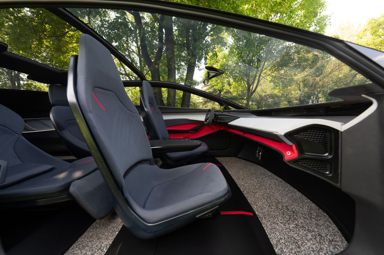 Esta imagen muestra el interior de un coche moderno, destacando el volante y una pantalla digital que muestra información del vehículo. El diseño es elegante y funcional, ideal para los amantes de la automoción. La combinación de colores y materiales resalta la innovación en el diseño automotriz.