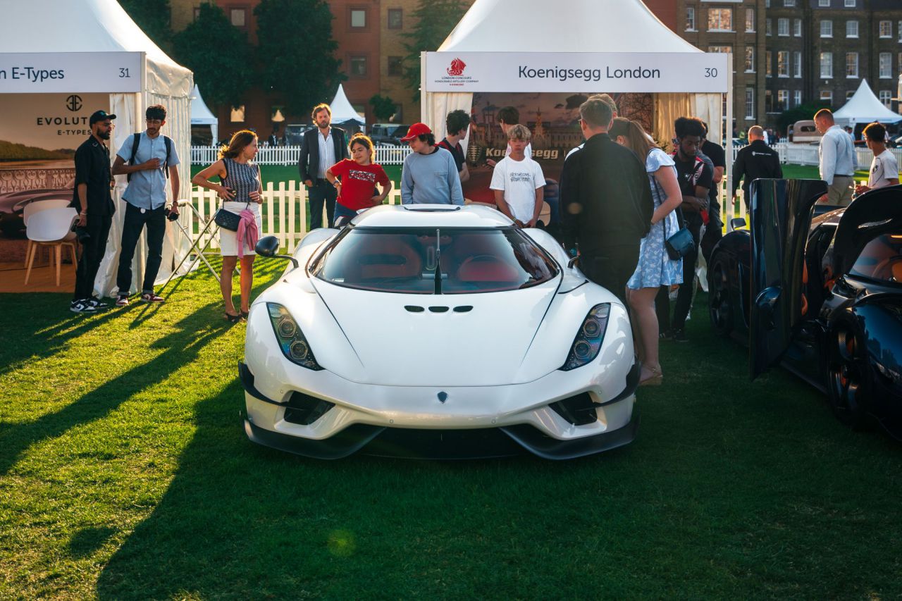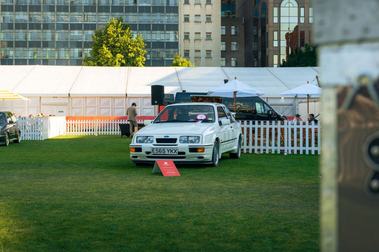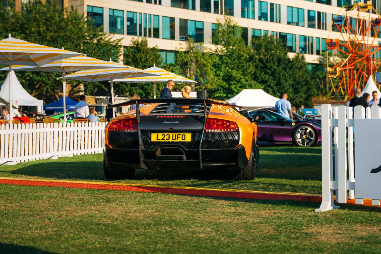 En esta imagen, el impresionante McLaren P1 se exhibe en un evento de coches clásicos. El vehículo, conocido por su diseño aerodinámico y rendimiento excepcional, está rodeado de otros autos clásicos que atraen la atención de los asistentes. Este evento celebra la pasión por los coches y la historia automotriz.