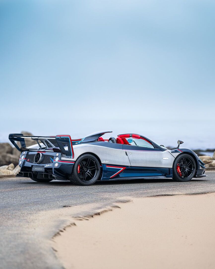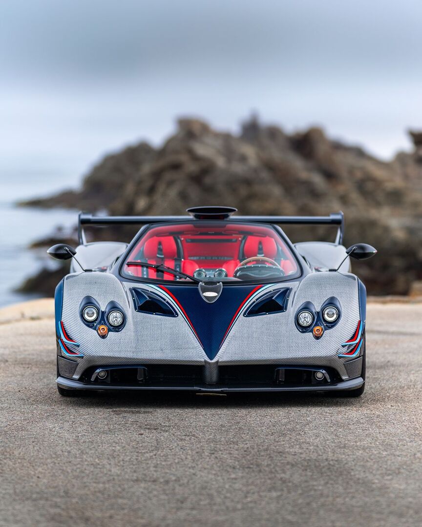 Un impresionante Pagani Zonda exhibido frente al mar.