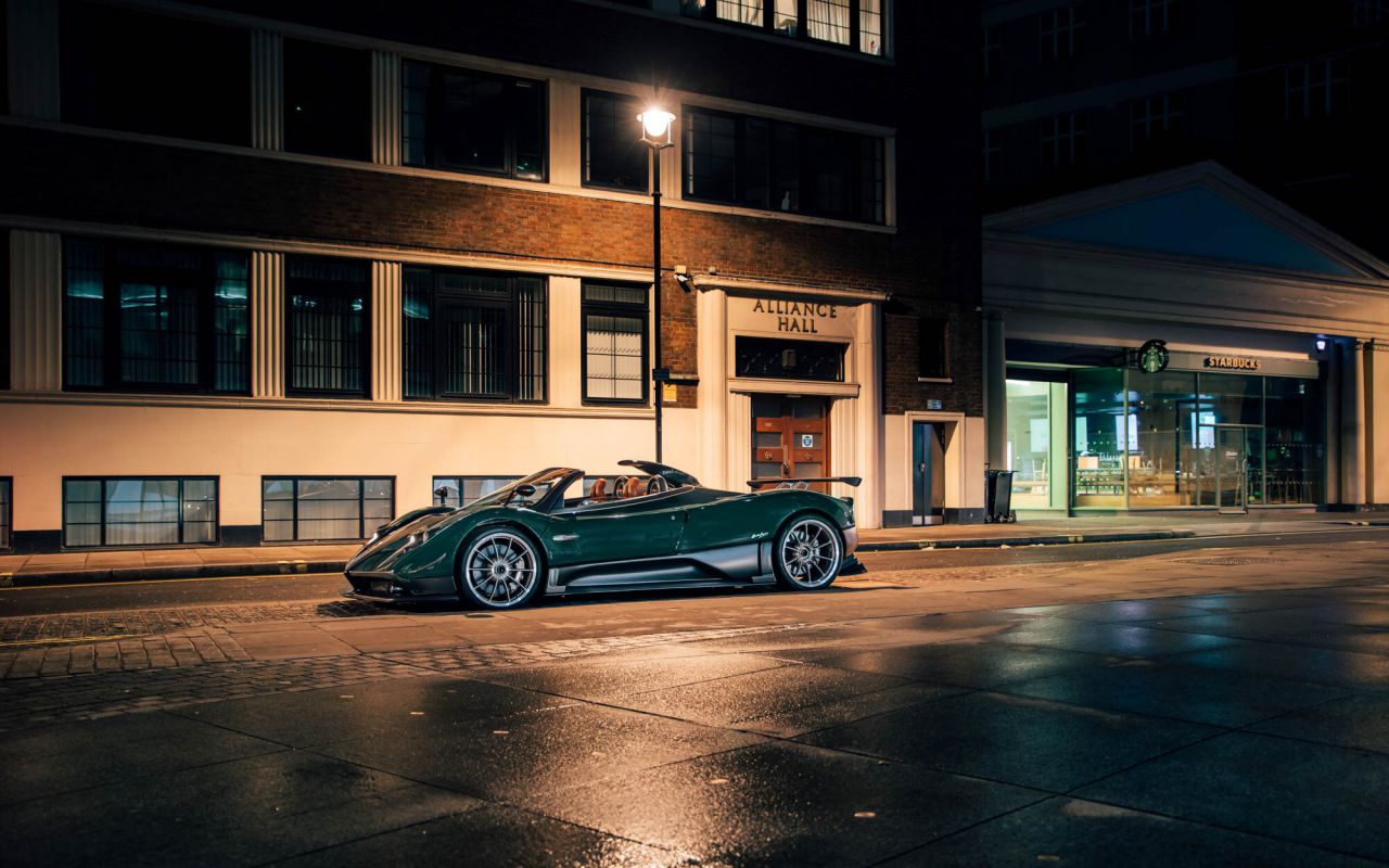 El impresionante Pagani Zonda destaca en una calle de lujo.