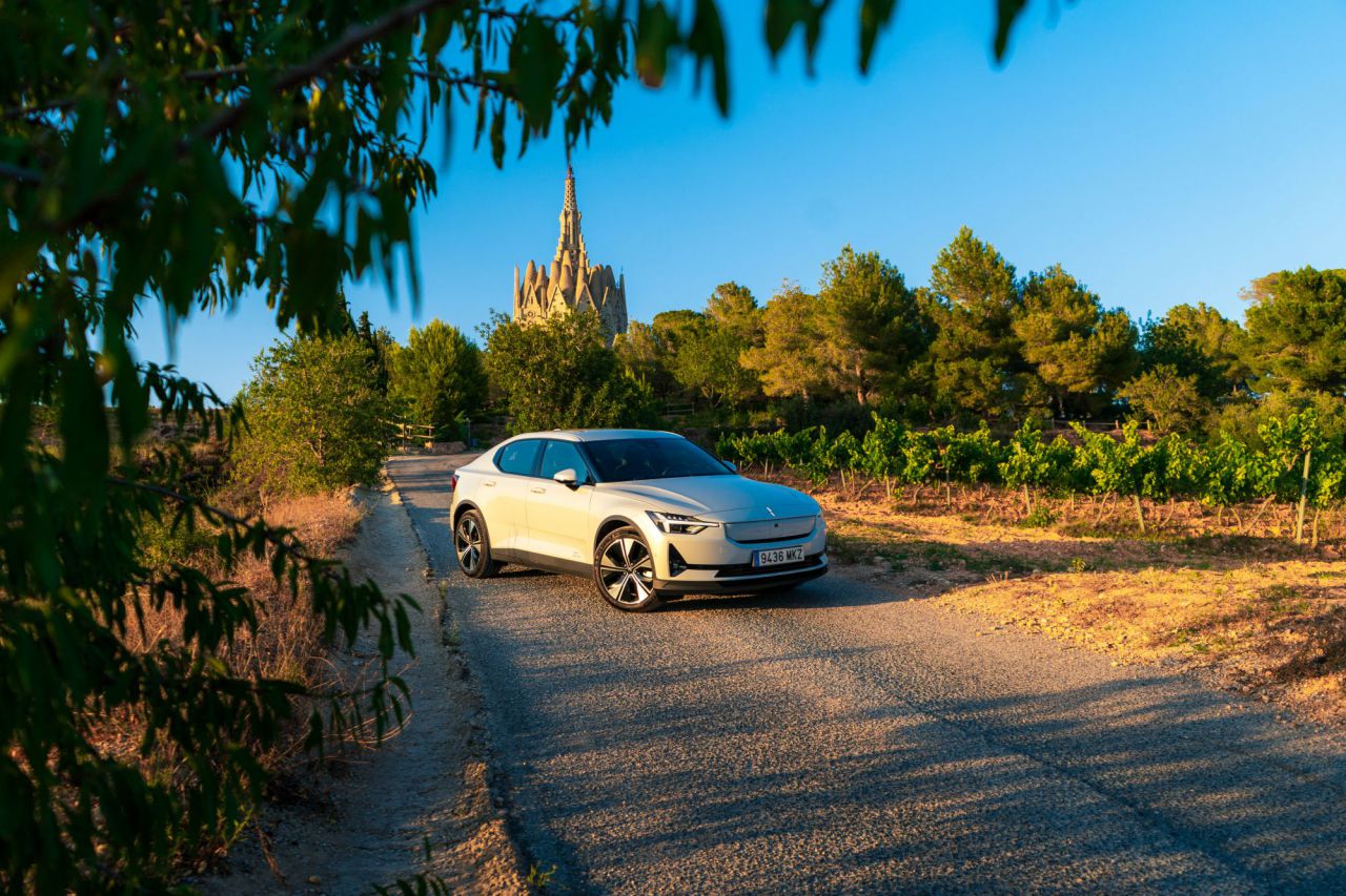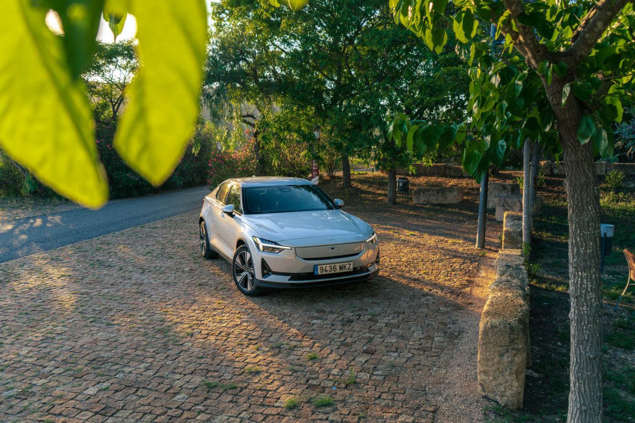 La imagen muestra el interior de un automóvil, destacando una pantalla táctil central que controla diversas funciones. Se puede ver el volante y parte del tablero, todo en un ambiente natural con árboles al fondo. Esta tecnología mejora la experiencia del conductor y la comodidad del viaje.