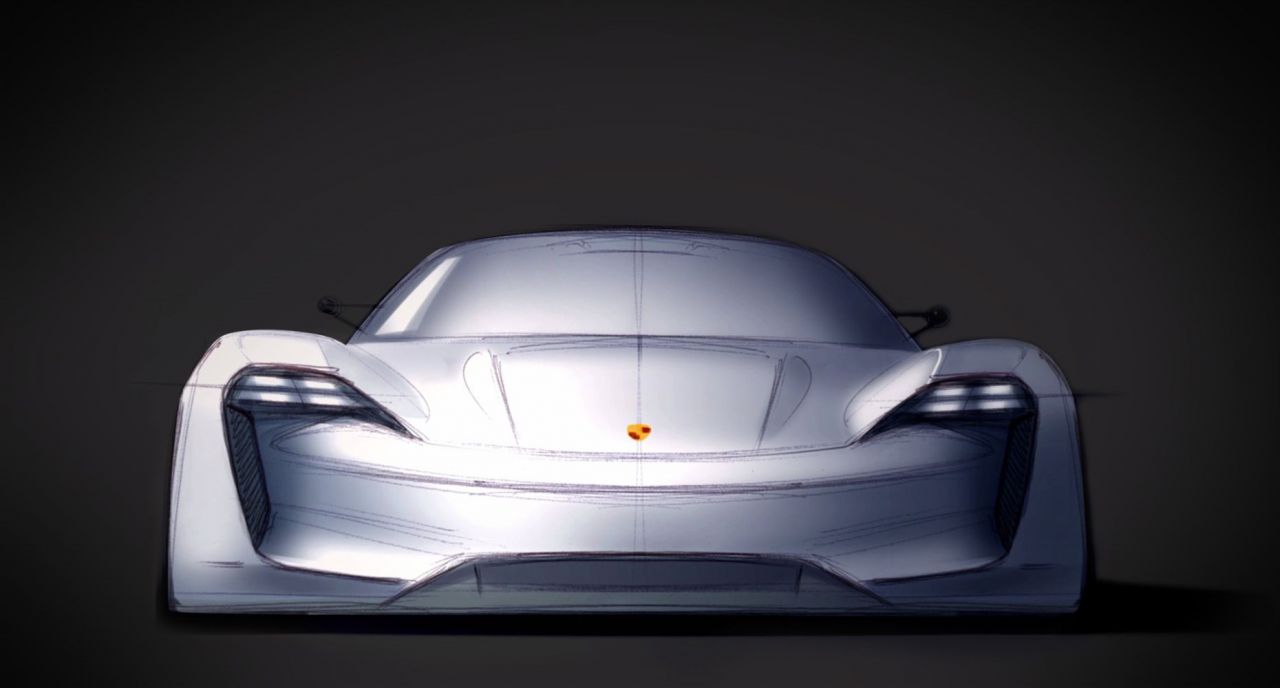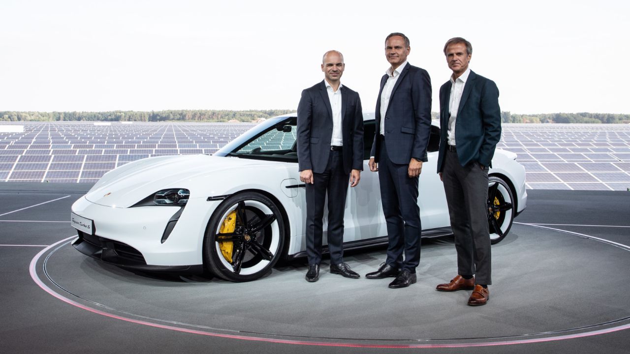 El Porsche Taycan, un vehículo eléctrico de alto rendimiento, exhibido en un evento automovilístico.
