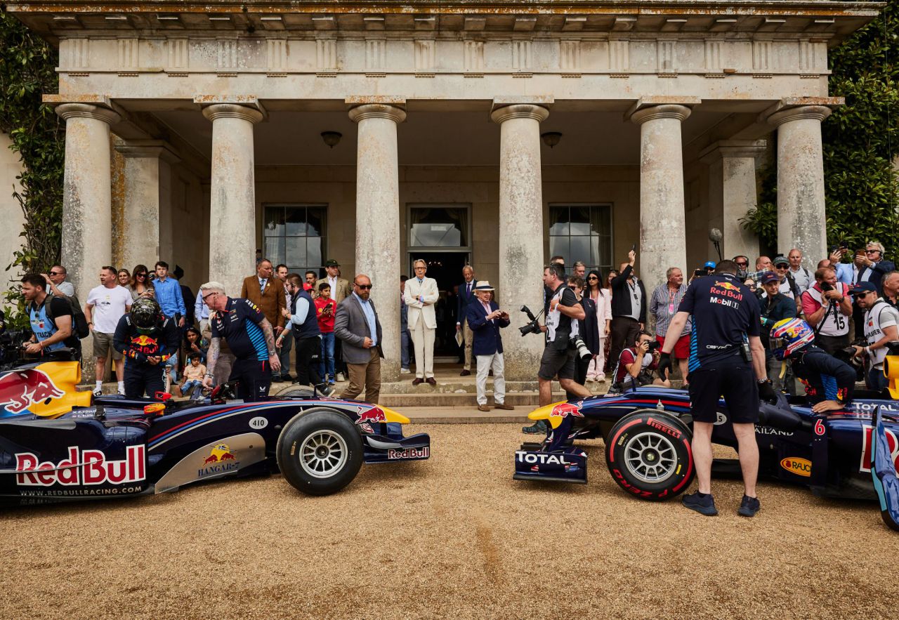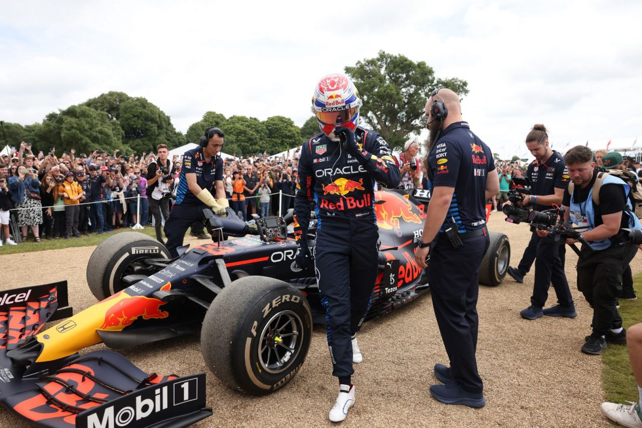 Un piloto de Red Bull F1 se prepara para el evento mientras el equipo lo asiste.