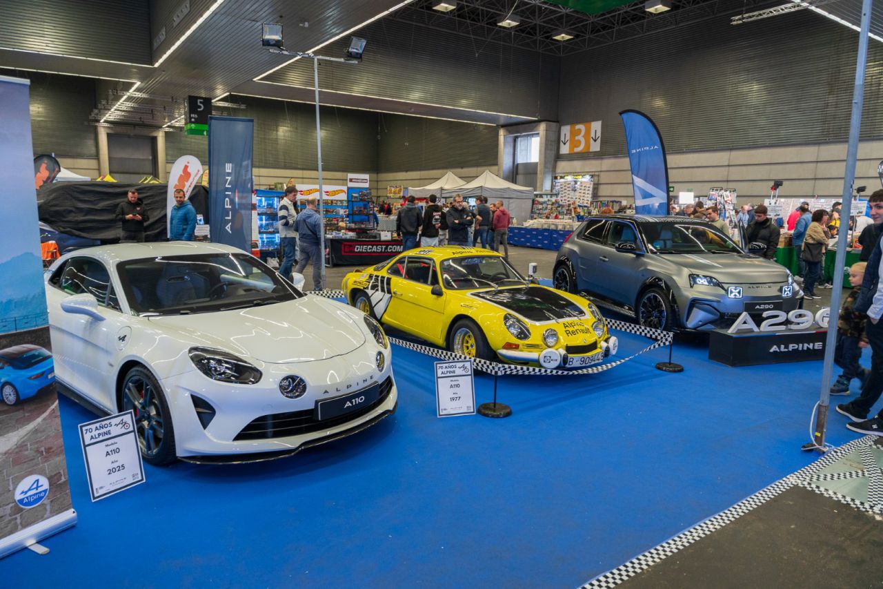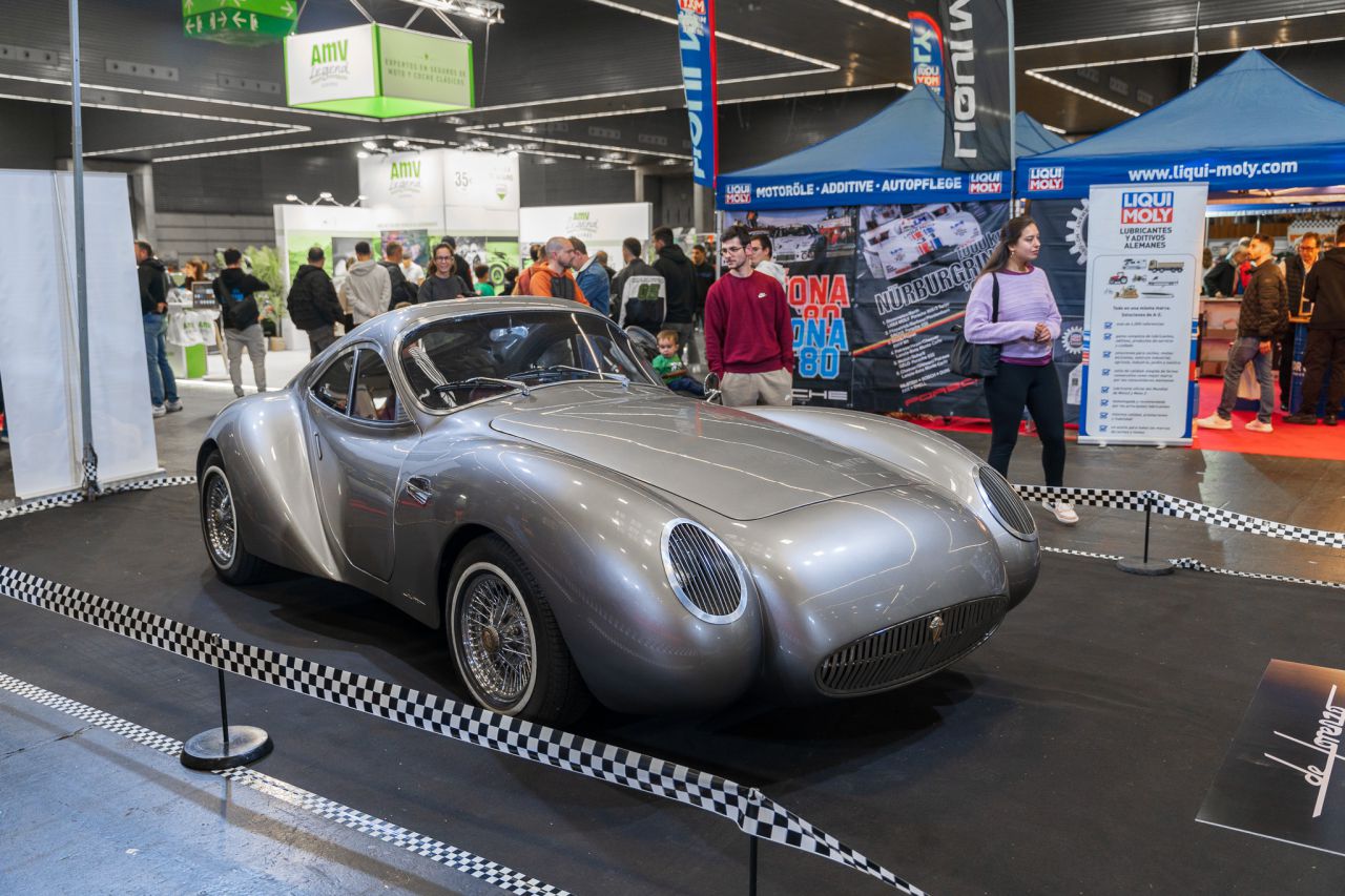 Este coche clásico destaca por su diseño único y elegante. La imagen muestra el vehículo en una exposición, rodeado de entusiastas del automovilismo. El evento atrae a una gran multitud, evidenciando el interés por los coches clásicos y su historia.