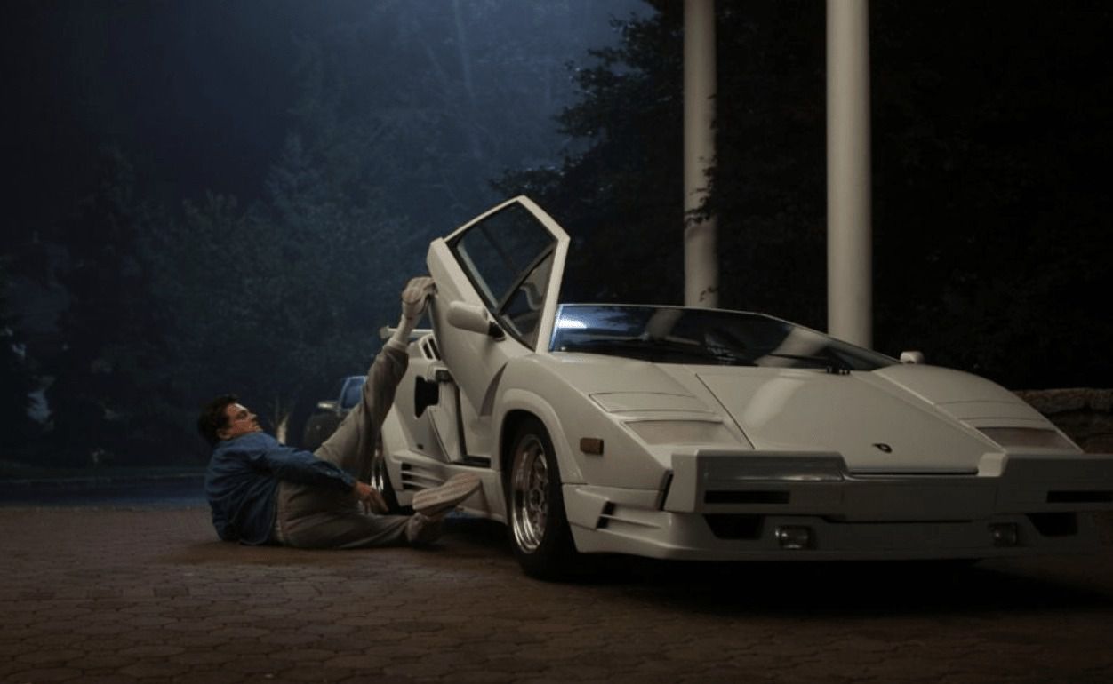 A lo largo de la película, el Countach es sometido a una serie de maniobras y daños, añadiendo algo de espectáculo y una sensación de realismo a la trama. Las acrobacias realizadas, incluida la apertura de la puerta de tijera resaltan visualmente la caída en desgracia del personaje principal, utilizando el coche como símbolo de su autodestrucción. Creo que esta escena, donde DiCaprio se baja del coche sosteniendo con la pierna la puerta, es el momento más icónico de esta unidad en la película, y su momento más famoso.