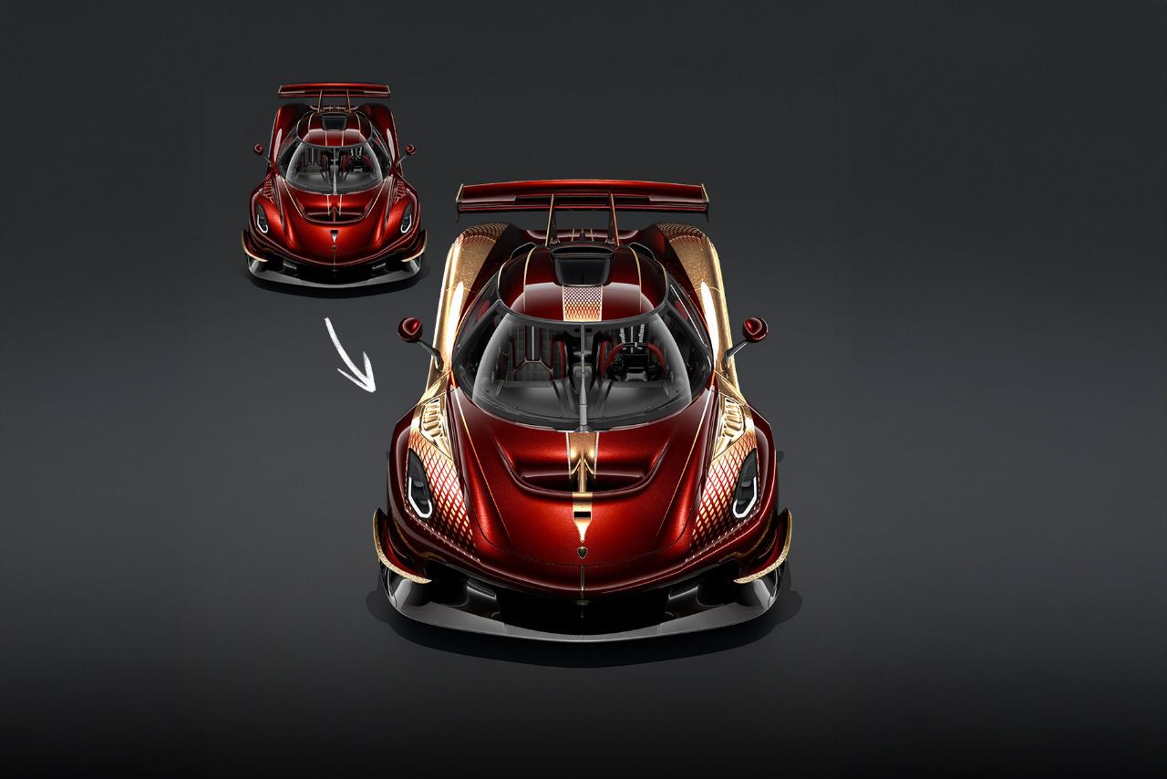 El proceso se articuló con el cliente y con la marca. La primera reunión fue por videollamada desde el concesionario oficial en Dubái, Alain Class Motors, donde se revisó qué piezas eran modificables y qué opciones de acabado admitía el pedido. La fábrica envió más de veinte muestras de fibra con recubrimientos de piedras preciosas y oro en diferentes proporciones, tamaños y concentraciones. Con toda esa disposición de muestras Savvini eligió el tipo de carbono, el tono exacto del barniz Candy semitransparente y un diseño de pintura a medida que ejecutará la propia Koenigsegg. La fase creativa superó el mes con iteraciones hasta fijar la propuesta final.