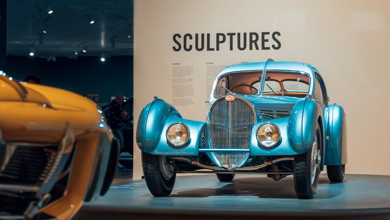 En la segunda sala de la exposición Motion, Autos, Art & Architecture localizada en el Guggenheim de Bilbao podemos observar cuatro coches muy especiales que pueden incluso valorarse como obras de arte, como si fuesen esculturas vacías con ruedas. Cada uno de estos automóviles sobresale por su excelencia técnica, pero se ensalza la belleza de sus fluidas líneas. Se trata de los Bugatti Type 57 Atlantic, Delahaye Type 165 Cabriolet, Pegaso Z-102 Cúpula y el Bentley R-Type Continental. Todos ellos forman parte de un estilo de diseño clásico donde la forma y la estética del vehículo tenían un papel fundamental.
