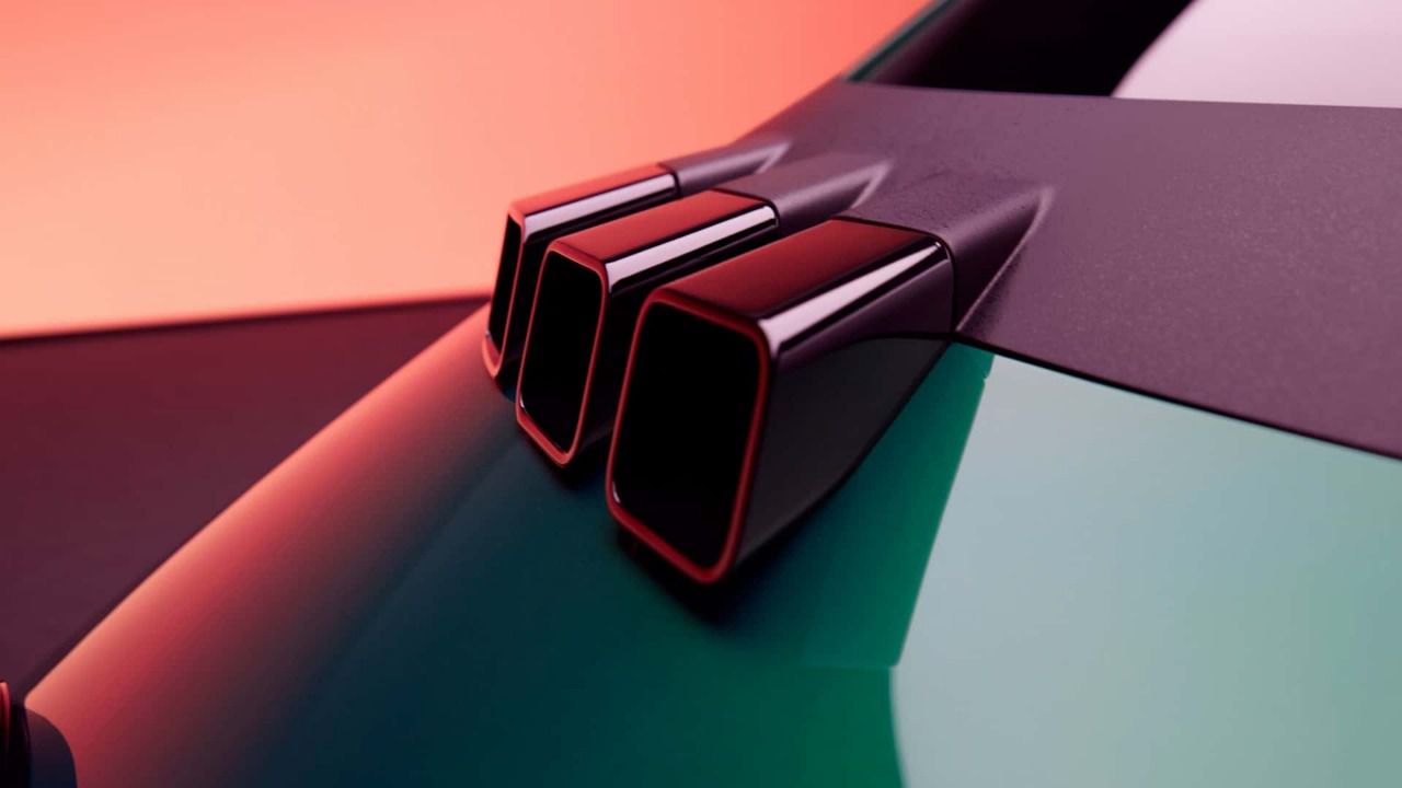 En el lateral, el coche conserva su tirador en forma de círculo, ahora más destacado, y sorprende con la incorporación de cinco puertas, manteniendo la armonía del diseño con la ubicación inteligente de los tiradores adicionales, que se puede intuir que se encuentran en la parte posterior de la ventanilla trasera. Las llantas, que mezclan un estilo de tapacubos con un toque moderno, son otro aspecto destacable. Son lenticulares, aerodinámicas y modernas, complementadas por unos pequeños pasos de rueda que añaden una sensación de solidez y estabilidad, dándole al vehículo el efecto de estar más agarrado al suelo.