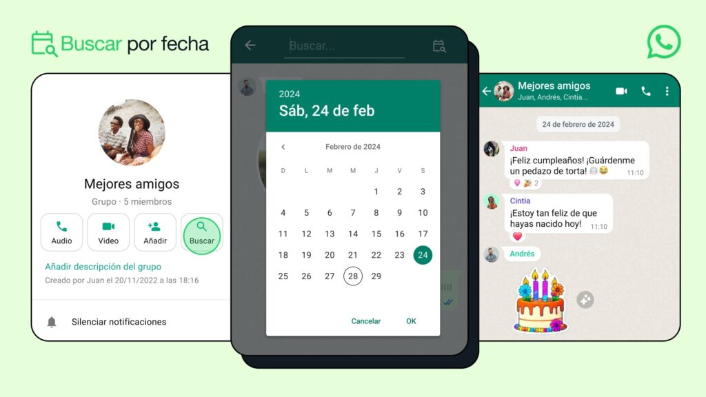 WhatsApp facilita la búsqueda de mensajes por fecha en su última actualización