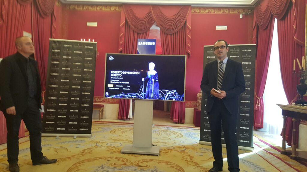 Samsung ha presentado junto al Teatro Real una aplicación exclusiva para Samsung Smart TV, que permite a los aficionados a la ópera disfrutar en su casa de contenidos audiovisuales exclusivos, como la primera ópera de la temporada Roberto Devereux, así como de una amplia selección de óperas y espectáculos grabados en el propio Teatro Real.