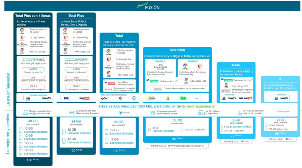 Telefónica ha anunciado que lanzará a finales de octubre un nuevo portfolio de Movistar Fusión, con el fin de simplificar la oferta disponible para los clientes, al pasar de diez a seis productos, además de facilitar el acceso a uno de los contenidos más demandados por los clientes: el fútbol.